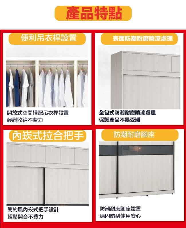 商 品 介 紹 | 【綠家居】摩克8.1尺單抽拉盤推&開門加高衣櫃/收納櫃組合 淺橡木紋色系+現代簡約風格+安心材質製造,整體採用防蛀木心板+防潮耐磨腳座+五金滑軌結構+5mm強化灰漆強化灰漆玻璃門片飾板+防夾手緩衝門片五金等安心材質製造,產品外層採用防潮耐磨噴漆處理搭配採用下層推門衣櫃+上層開門被櫥櫃+吊衣桿+單抽屜+拉盤層架+內開放層格等收納空間設計,全由專人配送到家,專業安心服務,替你省下更多時間! 淺橡木紋色系+現代簡約風格+安心材質製造,使用放心+搭配居家更便利 採用防蛀木心板+防潮耐磨腳座+五金滑軌結構+5mm強化灰漆強化灰漆玻璃門片飾板+防夾手緩衝門片五金等安心材質製造 產品外層採用防潮耐磨噴漆處理 採用下層推門衣櫃+上層開門被櫥櫃+吊衣桿+單抽屜+拉盤層架+內開放層格等收納空間設計 此商品不需要DIY組立,此商品為組立後之成品 品質保證、專業設計、貼心服務 全由專人配送到家,專業安心服務,替您省下更多時間 |