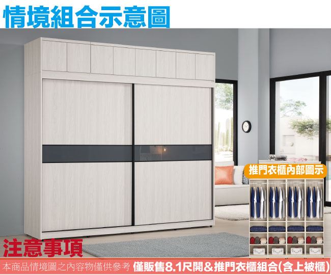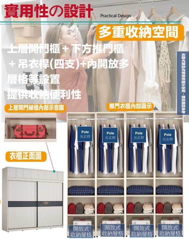 【綠家居】摩克8.1尺四吊桿內多格推&開門加高衣櫃/收納櫃組合