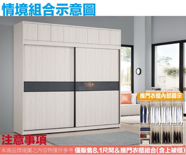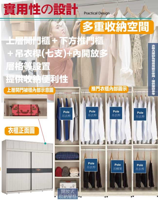 【綠家居】摩克8.1尺七吊桿內多格推&開門加高衣櫃/收納櫃組合