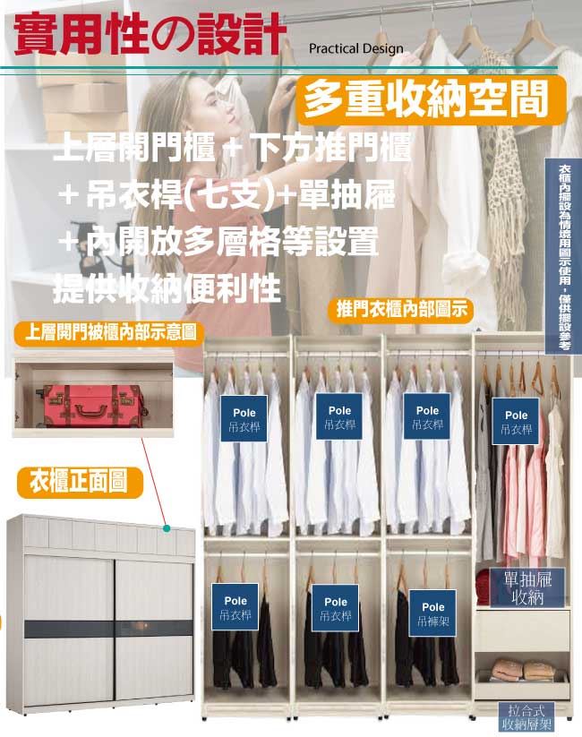 【綠家居】摩克8.1尺單抽拉盤七吊桿推&開門加高衣櫃/收納櫃組合