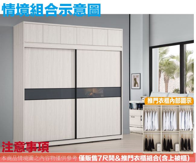 商 品 介 紹 | 【綠家居】摩克7尺六吊衣桿推&開門加高衣櫃/收納櫃組合 淺橡木紋色系+現代簡約風格+安心材質製造,整體採用防蛀木心板+防潮耐磨腳座+5mm強化灰漆強化灰漆玻璃門片飾板+防夾手緩衝門片五金等安心材質製造,產品外層採用防潮耐磨噴漆處理搭配採用下層推門衣櫃+上層開門被櫥櫃+吊衣桿+內開放層格等收納空間設計,全由專人配送到家,專業安心服務,替你省下更多時間! 淺橡木紋色系+現代簡約風格+安心材質製造,使用放心+搭配居家更便利 採用防蛀木心板+防潮耐磨腳座+5mm強化灰漆強化灰漆玻璃門片飾板+防夾手緩衝門片五金等安心材質製造 產品外層採用防潮耐磨噴漆處理 採用下層推門衣櫃+上層開門被櫥櫃+吊衣桿+內開放層格等收納空間設計 此商品不需要DIY組立,此商品為組立後之成品 品質保證、專業設計、貼心服務 全由專人配送到家,專業安心服務,替您省下更多時間 |