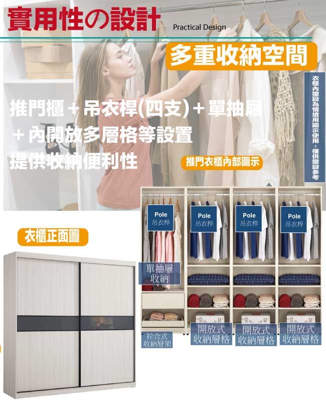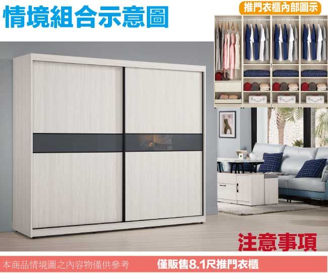 【綠家居】摩克8.1尺四吊衣桿單抽拉盤推門衣櫃/收納櫃