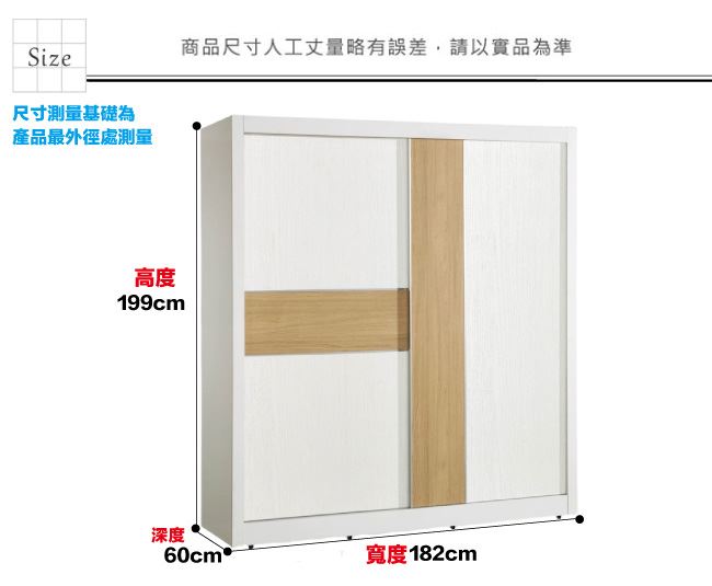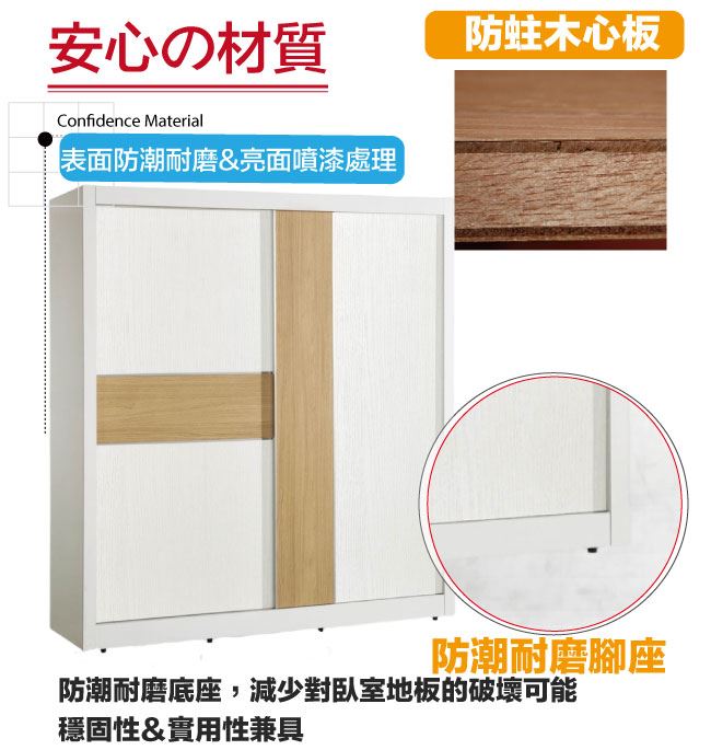 材質 | ◆產品名稱:【綠家居】奈吉亞雙色6.1尺推門衣櫃組合 尺寸:(寬)182x(深)60(高)199/公分 ◆材質: 材質:防蛀木心板+防潮耐磨腳座+五金滑軌結構+強化玻璃鏡面 噴漆:防潮耐磨&亮面噴漆處理