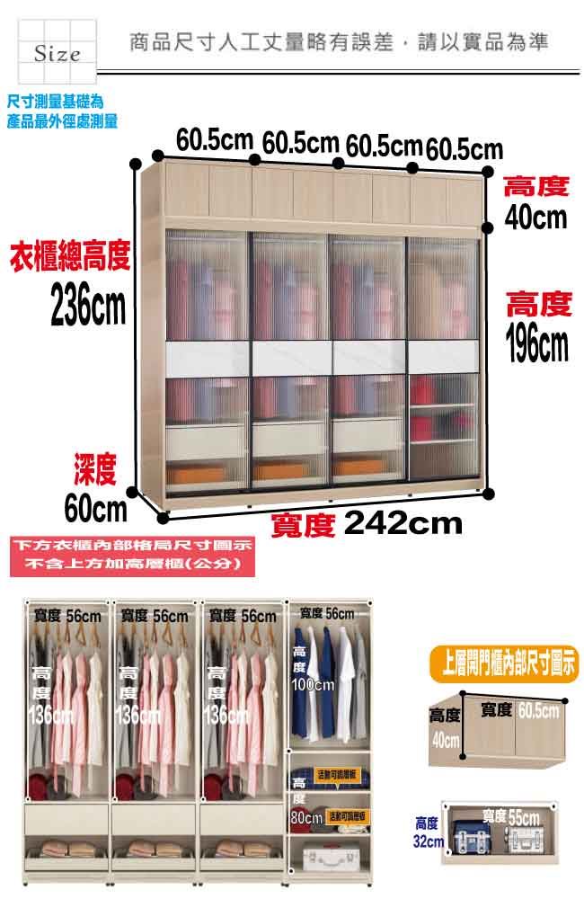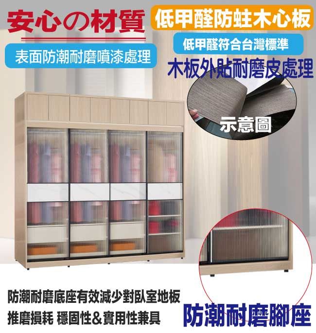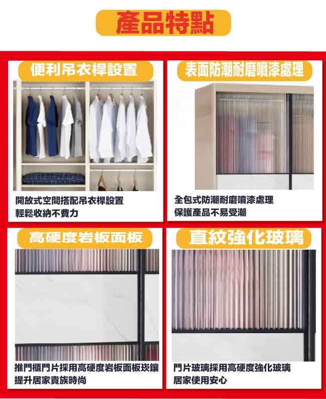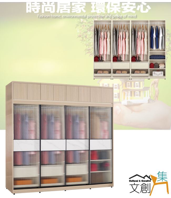 商 品 介 紹 | 【綠家居】維爾岩板8.1尺鋁框玻璃加高衣櫃組合(吊衣桿x4+三抽屜) 原橡木紋色系+現代簡約風格+安心材質製造,使用放心+搭配居家更便利,整體採用防蛀木心板+防潮耐磨腳座+黑漆鋁製邊框+5mm強化直紋玻璃+五金滑軌結構+防夾手緩衝門片五金+6mm高硬度岩板門片面板等材質搭配外層採用優莉坦耐磨全包式噴漆處理 ,採用開門櫃(上櫃)+推門櫃(下櫃)+吊衣桿+三抽屜+內開放層格等收納空間設計,全由專人配送到家,專業安心服務,替你省下更多時間! 【商品特色】 原橡木紋色系+現代簡約風格+安心材質製造,使用放心+搭配居家更便利 防蛀木心板+防潮耐磨腳座+黑漆鋁製邊框+5mm強化直紋玻璃+五金滑軌結構+防夾手緩衝門片五金+6mm高硬度岩板門片面板等材質 採用開門櫃(上櫃)+推門櫃(下櫃)+吊衣桿+三抽屜+內開放層格等收納空間設計 此商品不需要DIY組立,此商品為組立後之成品 品質保證、專業設計、貼心服務 全由專人配送到家,專業安心服務,替您省下更多時間