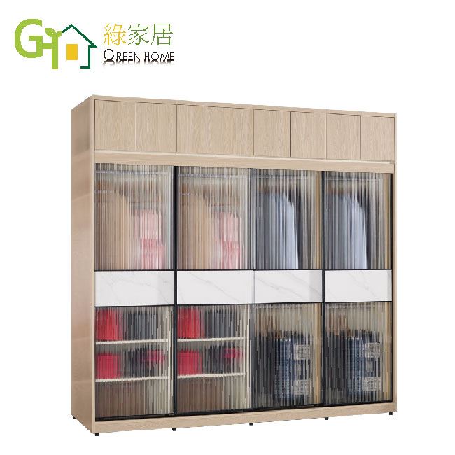 【綠家居】維爾岩板8.1尺鋁框玻璃加高衣櫃組合(吊衣桿x6+內多分層格)