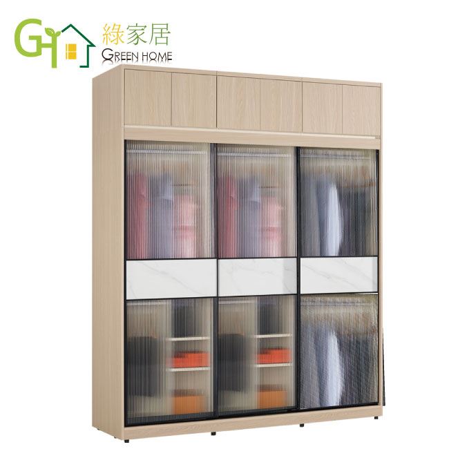 【綠家居】維爾岩板7.5尺鋁框玻璃加高衣櫃組合(吊衣桿x6+內多分層格)