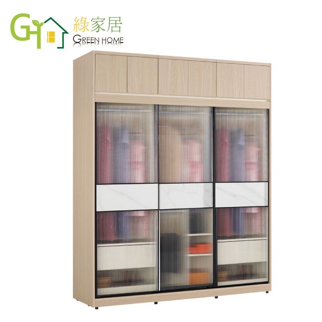 【綠家居】維爾鋁框7.5尺岩板玻璃加高衣櫃組合(吊衣桿x4+二抽屜)