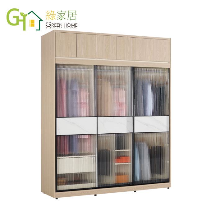【綠家居】維爾鋁框7.5尺岩板玻璃加高衣櫃組合(吊衣桿x5+單抽屜)