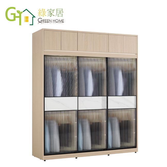 【綠家居】維爾加高7.5尺鋁框岩板玻璃加高衣櫃組合(吊衣桿x6+內多分層格)