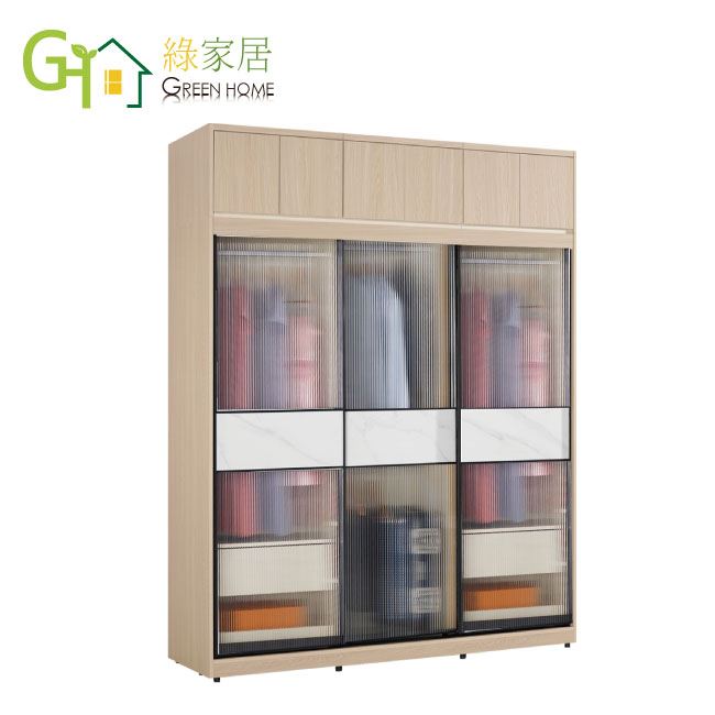 【綠家居】維爾玻璃岩板6.1尺鋁框岩加高衣櫃組合(吊衣桿x4+二抽屜)