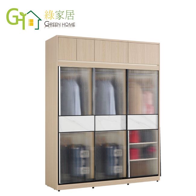 【綠家居】維爾6.1尺岩板鋁框玻璃加高衣櫃組合(吊衣桿x5+內多分層格)