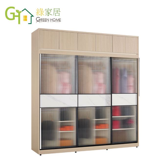【綠家居】維爾玻璃岩板7尺鋁框加高衣櫃組合(吊衣桿x5+內多分層格)