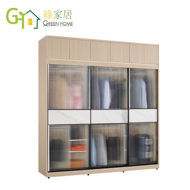 【綠家居】維爾岩板7尺鋁框加高玻璃衣櫃組合(吊衣桿x6+內多分層格)