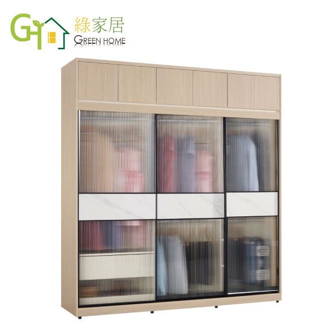【綠家居】維爾加高7尺玻璃岩板鋁框加高衣櫃組合(吊衣桿x5+單抽屜)