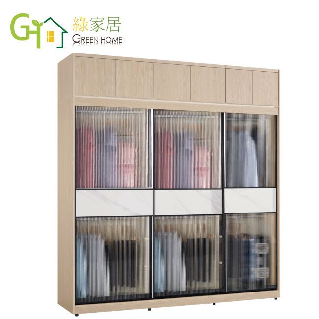 【綠家居】維爾岩板7尺鋁框加高玻璃衣櫃組合(吊衣桿x6+內多分層格)