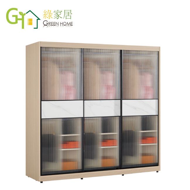 【綠家居】維爾玻璃7.5尺岩板鋁框衣櫃(吊衣桿x6+內多分層格)