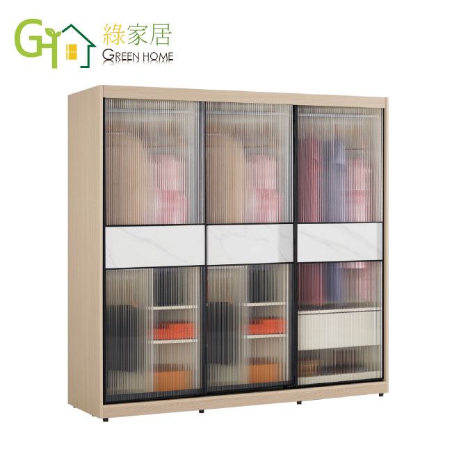 【綠家居】維爾玻璃7.5尺岩板鋁框衣櫃(吊衣桿x5+單抽屜)