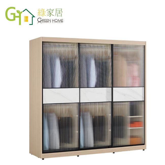 【綠家居】維爾岩板7.5尺玻璃鋁框衣櫃(吊衣桿x6+內多分層格)
