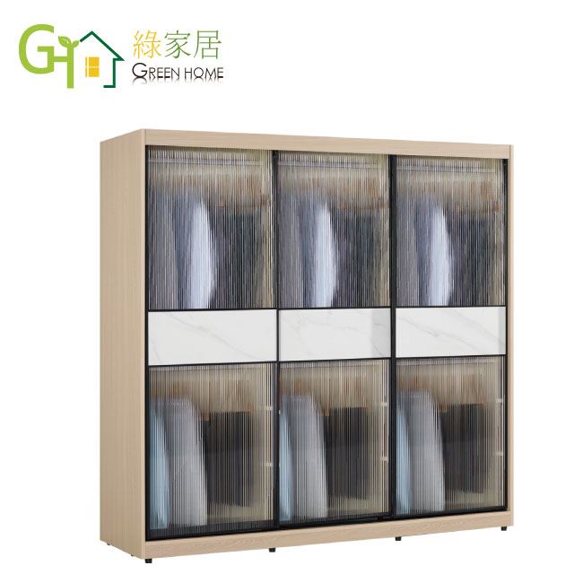【綠家居】維爾鋁框7.5尺玻璃岩板衣櫃(吊衣桿x6+內多分層格)