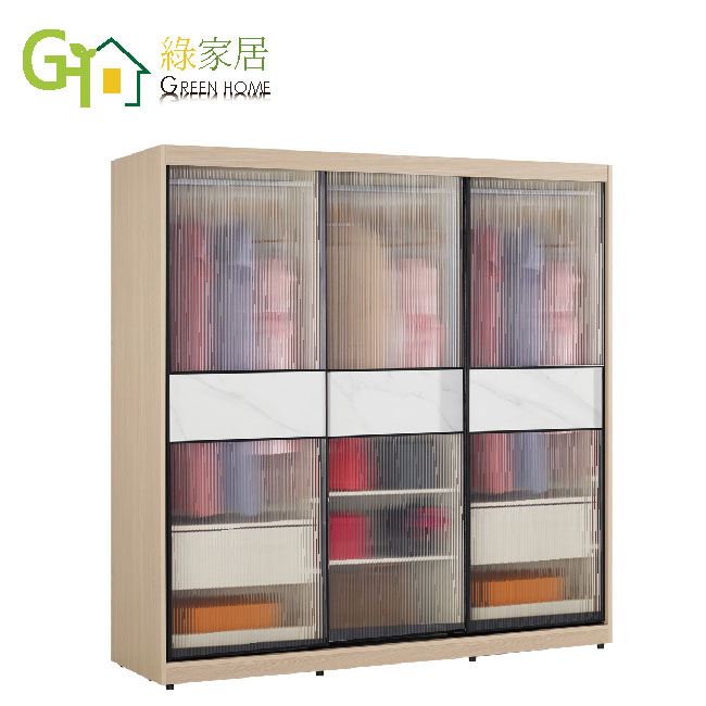 【綠家居】維爾玻璃6.1尺岩板鋁框衣櫃(吊衣桿x3+二抽屜)