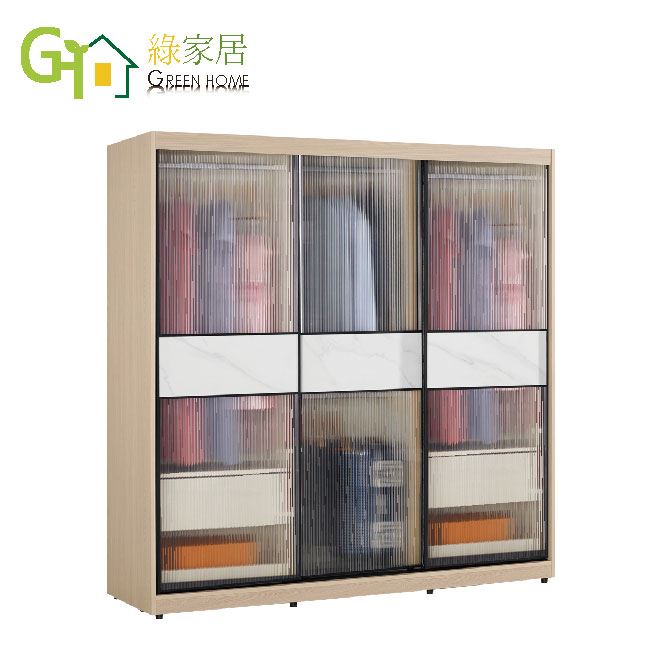 【綠家居】維爾6.1尺岩板鋁框玻璃衣櫃(吊衣桿x4+二抽屜)