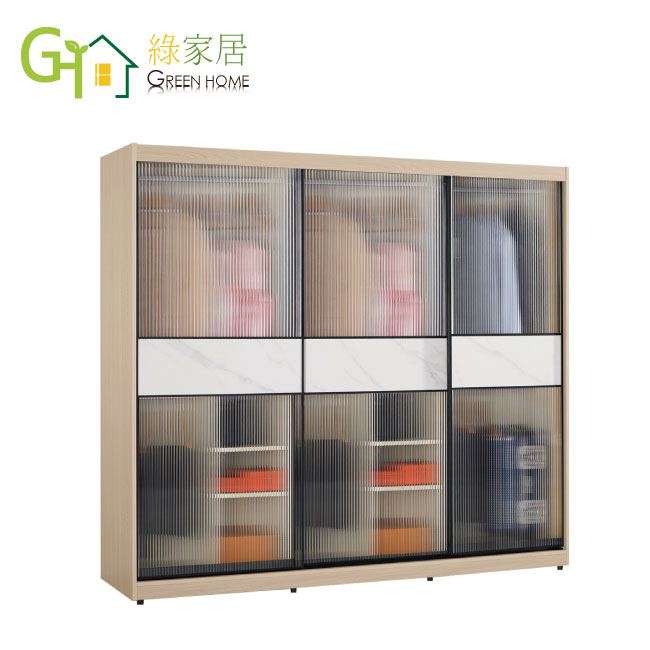 【綠家居】維爾7尺岩板鋁框玻璃衣櫃(吊衣桿x6+內多分層格)