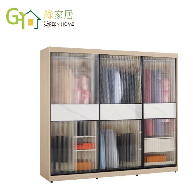 【綠家居】維爾鋁框7尺玻璃岩板衣櫃(吊衣桿x5+單抽屜)