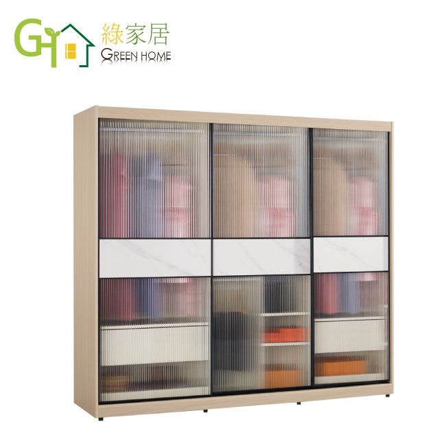 【綠家居】維爾岩板7尺鋁框玻璃衣櫃(吊衣桿x4+二抽屜)