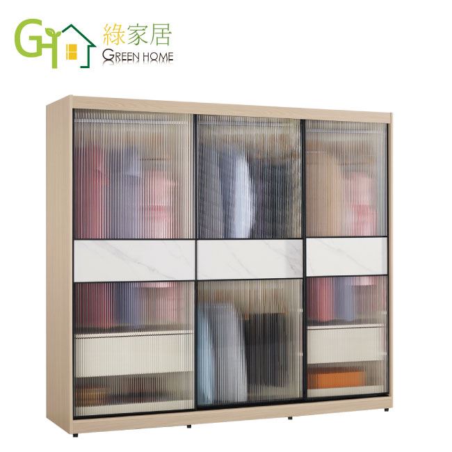【綠家居】維爾玻璃7尺鋁框岩板衣櫃(吊衣桿x4+二抽屜)