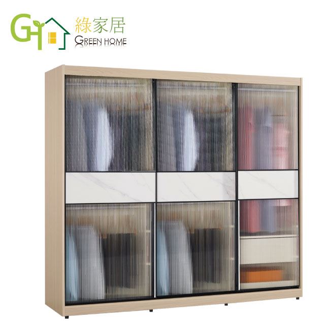 【綠家居】維爾7尺鋁框玻璃岩板衣櫃(吊衣桿x5+單抽屜)