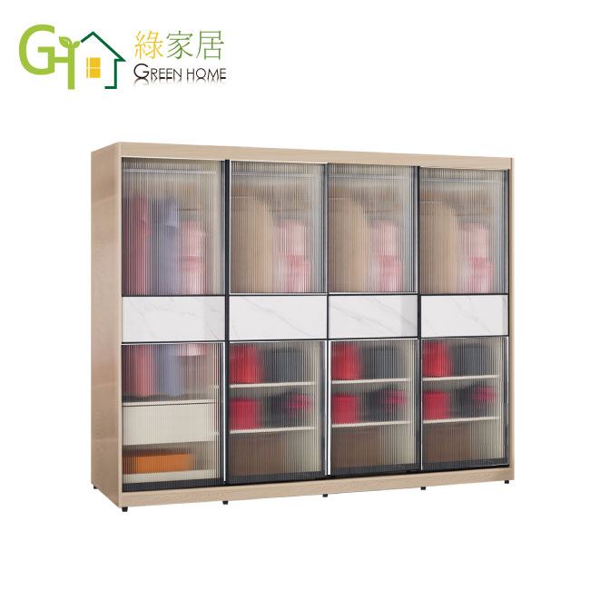 【綠家居】維爾8.1尺鋁框玻璃岩板衣櫃(吊衣桿x4+單抽屜)