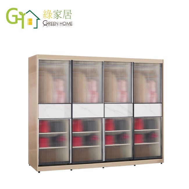 【綠家居】維爾鋁框8.1尺玻璃岩板衣櫃(吊衣桿x4+內多分層格)