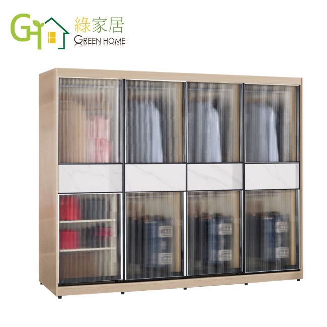 【綠家居】 維爾岩板8.1尺鋁框玻璃衣櫃(吊衣桿x7+內多分層格)