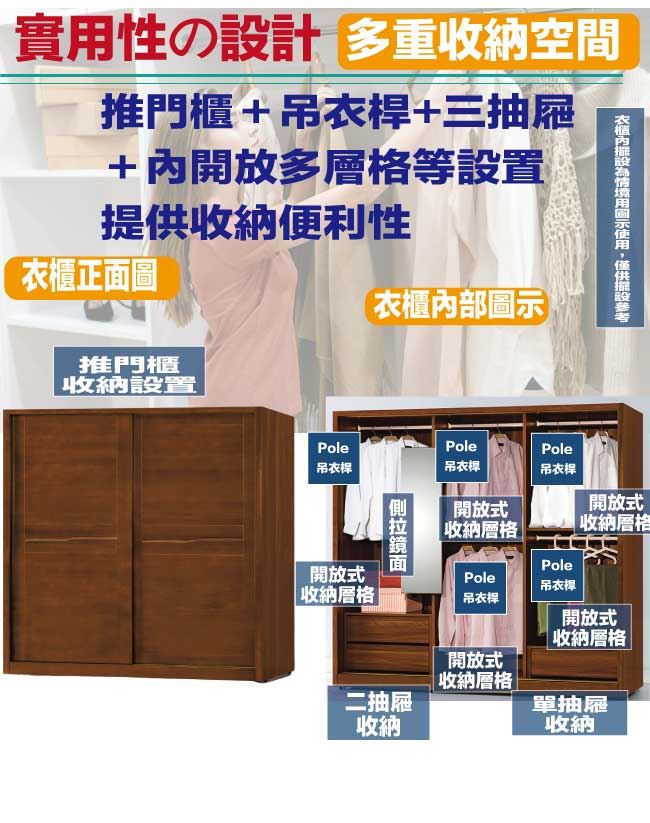 商 品 介 紹 | 【綠家居】胡立歐7.1尺實木推門內鏡面三抽衣櫃 淺胡桃木紋色系+現代簡約風格+安心材質製造,使用放心+搭配居家更便利,整體採用楠檜實木+防蛀木心板+防潮耐磨底座+五金滑軌結構+強化玻璃鏡面等安心材質製造搭配外層採用優莉坦耐磨全包式噴漆處理 ,採用推門櫃+吊衣桿+內附側拉鏡面+三抽屜+內開放層格等收納空間設計,全由專人配送到家,專業安心服務,替你省下更多時間! 【商品特色】 淺胡桃木紋色系+現代簡約風格+安心材質製造,使用放心+搭配居家更便利 楠檜實木+防蛀木心板+防潮耐磨底座+五金滑軌結構+強化玻璃鏡面等安心材質製造 採用推門櫃+吊衣桿+內附側拉鏡面+三抽屜+內開放層格等收納空間設計 此商品不需要DIY組立,此商品為組立後之成品 品質保證、專業設計、貼心服務 全由專人配送到家,專業安心服務,替您省下更多時間