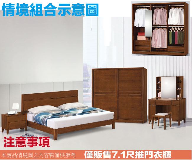 【綠家居】胡立歐7.1尺實木推門內鏡面三抽衣櫃