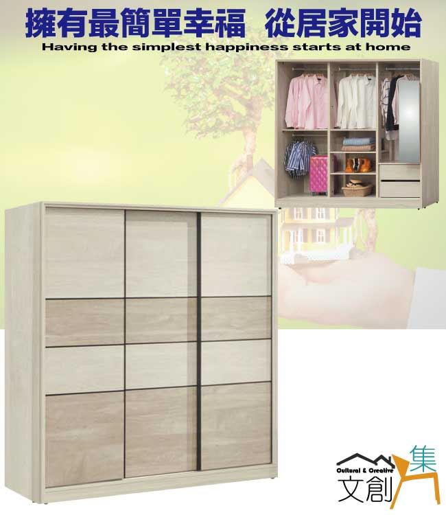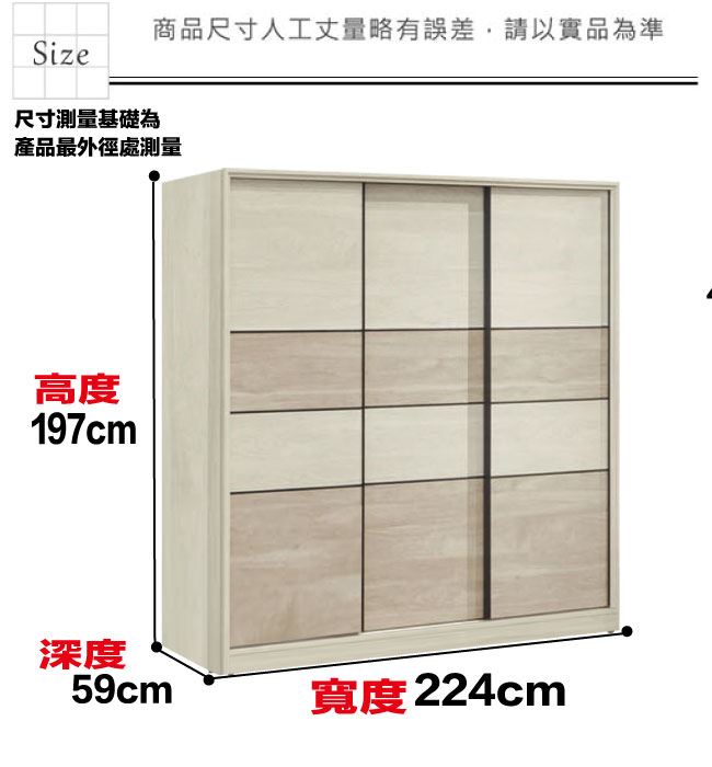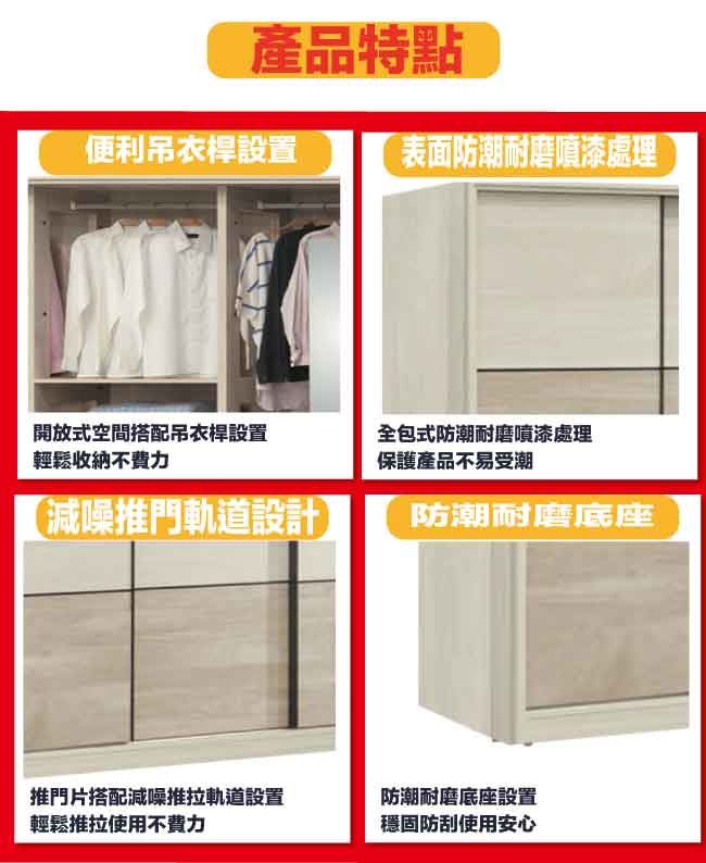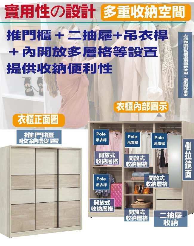 【綠家居】戈壁雙色7.5尺推門內鏡面二抽衣櫃