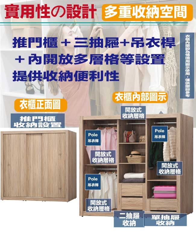 【綠家居】克蘿7.1尺推門內三抽衣櫃