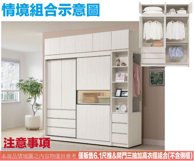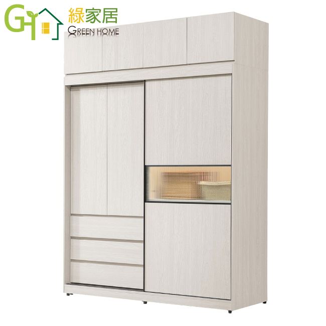 【綠家居】菲可達6.1尺玻璃開&推門加高衣櫃組合(內含LED感應燈)