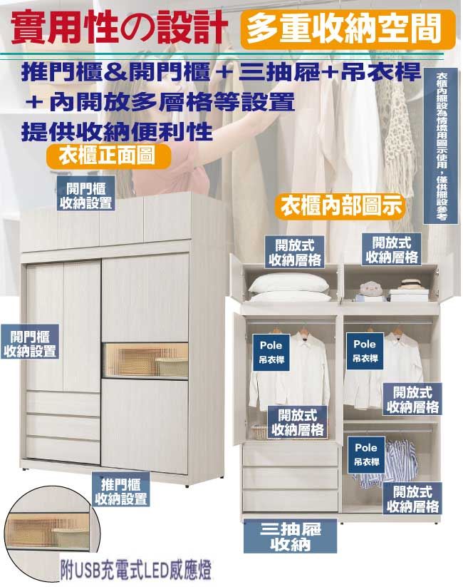 商 品 介 紹 | 【綠家居】菲可達6.1尺玻璃開&推門加高衣櫃組合(內含LED感應燈) 淺橡木紋色系+現代簡約風格+安心材質製造,使用放心+搭配居家更便利,整體採用防蛀木心板+防潮耐磨腳座+五金滑軌結構+5mm強化直紋玻璃+防夾手緩衝門片五金等材質搭配外層採用優莉坦耐磨全包式噴漆處理 ,採用推&開門櫃+吊衣桿+三抽屜+內開放層格等收納空間設計,全由專人配送到家,專業安心服務,替你省下更多時間! 【商品特色】 淺橡木紋色系+現代簡約風格+安心材質製造,使用放心+搭配居家更便利 防蛀木心板+防潮耐磨腳座+五金滑軌結構+5mm強化直紋玻璃+防夾手緩衝門片五金等材質 採用推&開門櫃+吊衣桿+三抽屜+內開放層格等收納空間設計 此商品不需要DIY組立,此商品為組立後之成品 品質保證、專業設計、貼心服務 全由專人配送到家,專業安心服務,替您省下更多時間