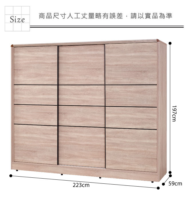 衣櫃:(寬)223x (深)59 x(高)197 / 公分