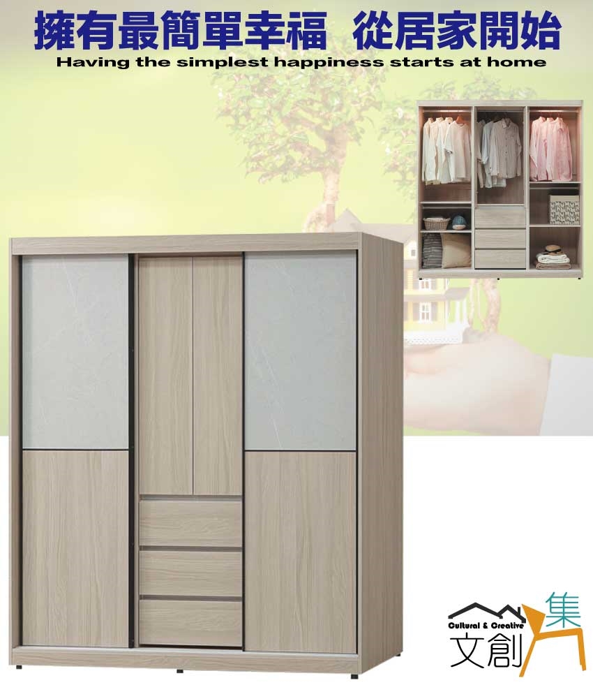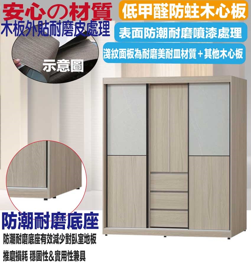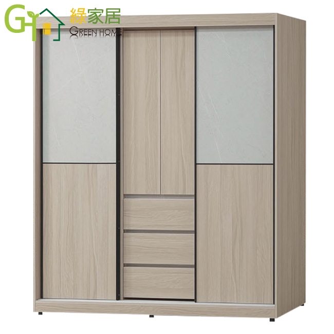 【綠家居】范巴雙色6.1尺開&推門三抽衣櫃
