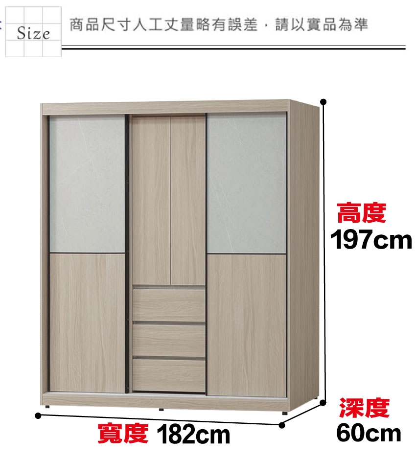 - ◆產品名稱:【綠家居】范巴雙色6.1尺開&推門三抽衣櫃