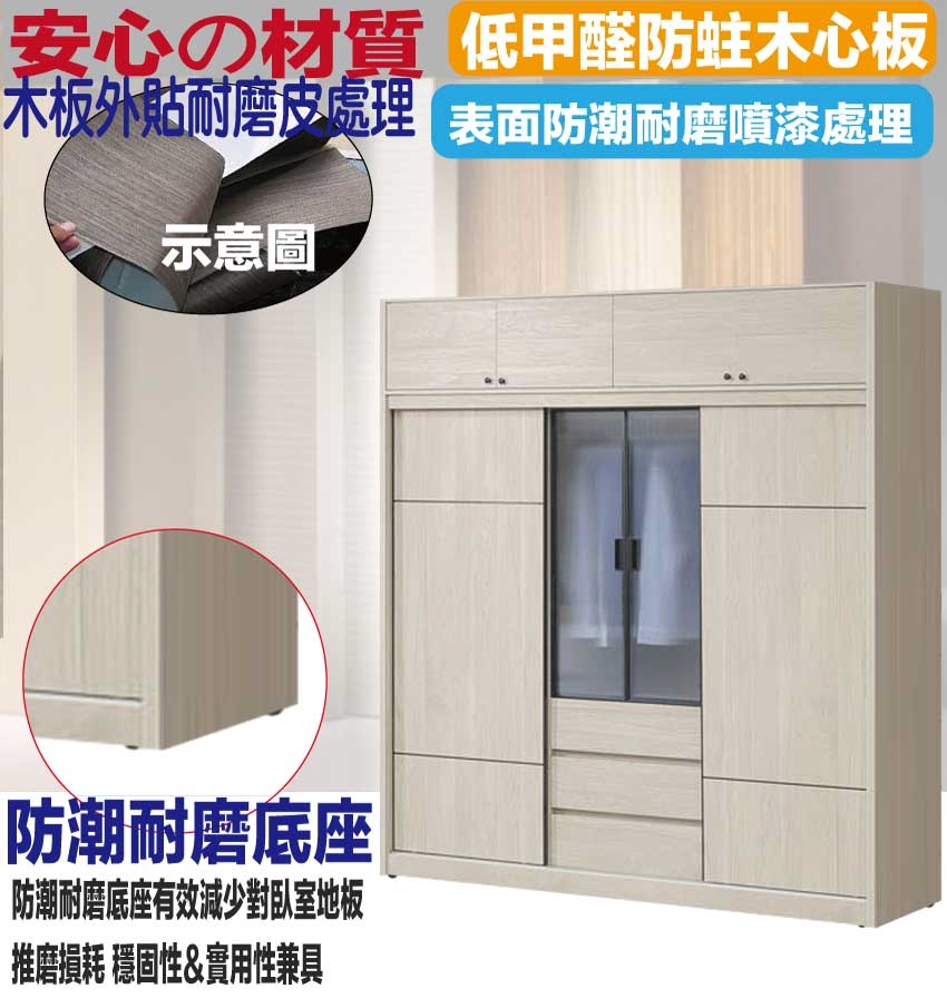 ★偏遠地區需額外加收運費,下標請先問與答詢問★ ★下訂前注意 由於商品流動較快,下訂前請先詢問是否有貨在下訂喔~★ 【綠家居】夏斯7.6尺開&推門加高衣櫃組合 橡木紋色系+安心材質製造,使用放心+搭配居家更便利,採用防蛀木心板+防潮耐磨底座+五金滑軌結構+長虹直紋PC壓克力板+防夾手緩衝五金等安心材質製造 ,外層採用防潮耐磨噴漆處理搭配採用開門櫃&推門櫃+吊衣桿+三抽屜+內開放多層格等收納空間設計,全由專人配送到家,專業安心服務,替你省下更多時間!
