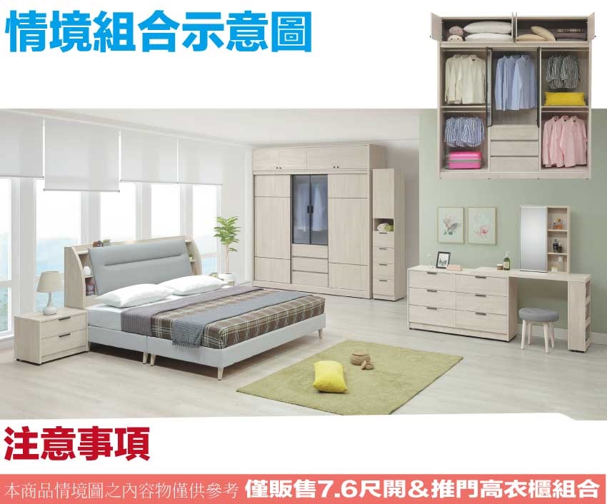 【綠家居】夏斯7.6尺開&推門加高衣櫃組合