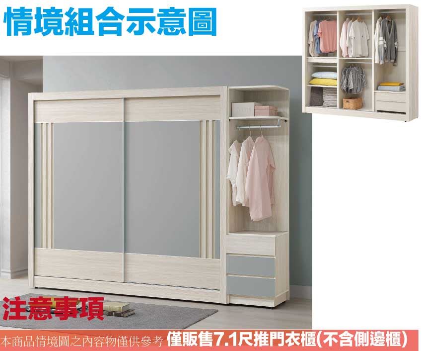 - ◆產品名稱:【綠家居】奇伊7.1尺推門衣櫃