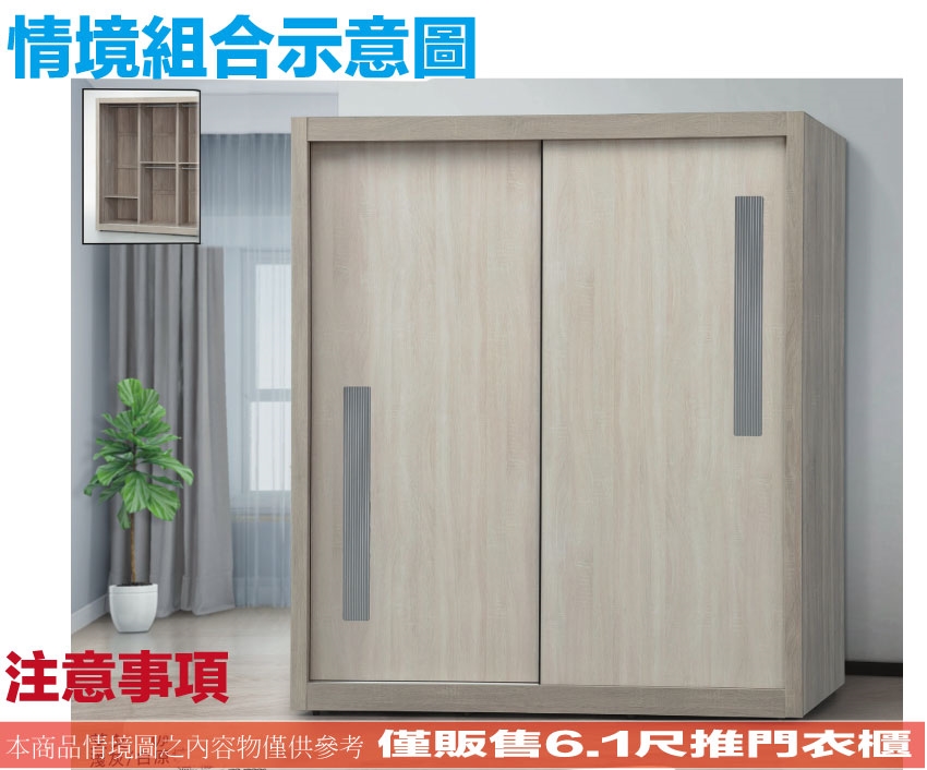 - ◆產品名稱:【綠家居】莉斯6.1尺推門衣櫃