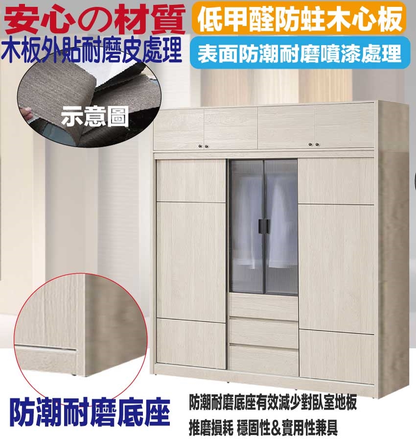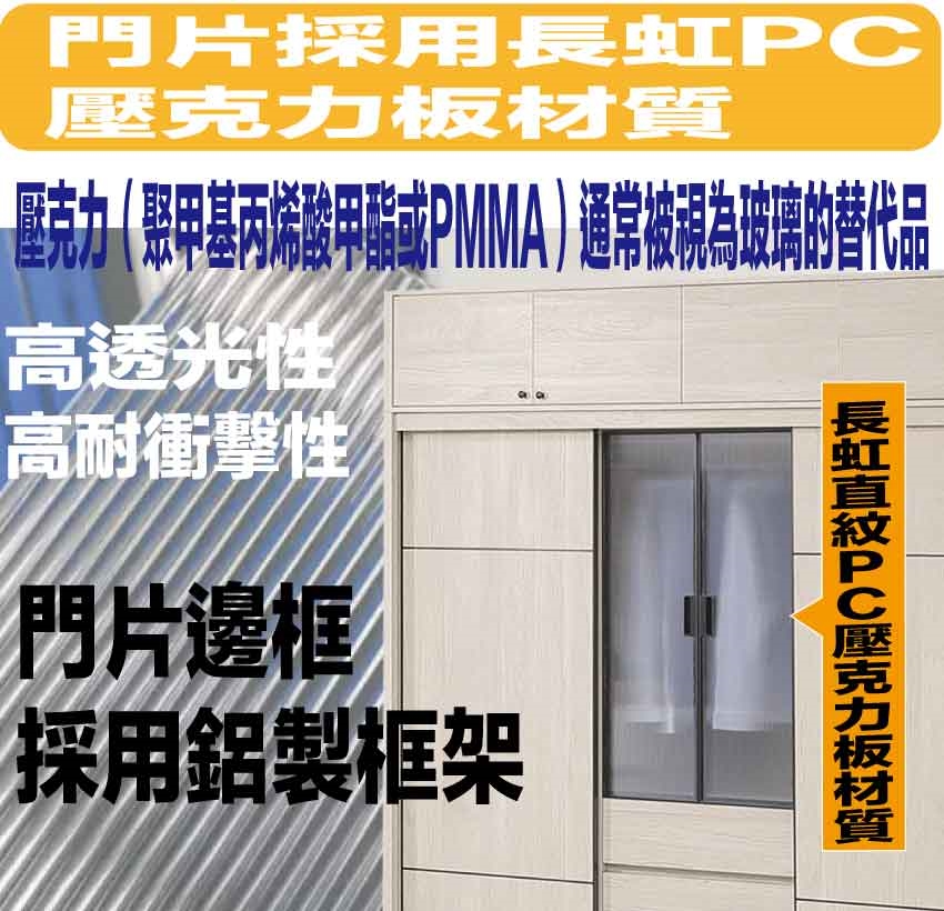 防蛀木心板+防潮耐磨底座+防夾手緩衝門片五金+鋁製黑漆框架+PC壓克力門片等安心材質製造