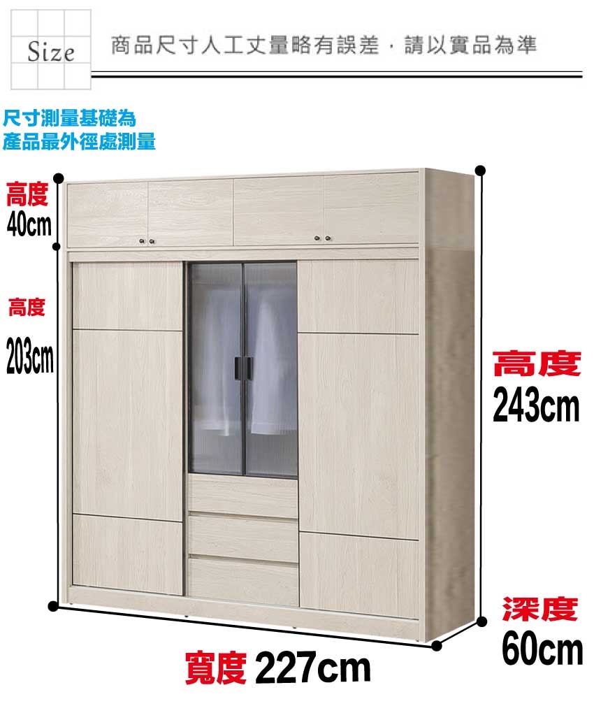 - 尺寸:(寬)227x(深)60x(高)243/公分
