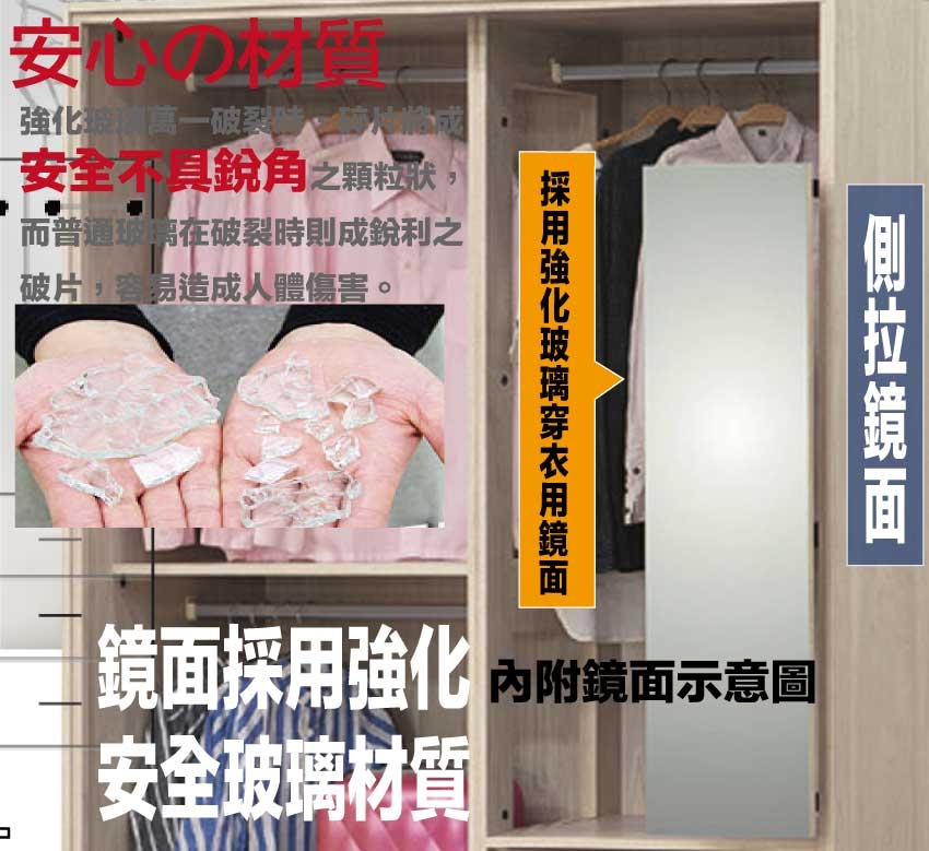 - ◆產品名稱:【綠家居】泰順6.9尺推門內拉合鐵籃衣櫃(內含側拉鏡面)