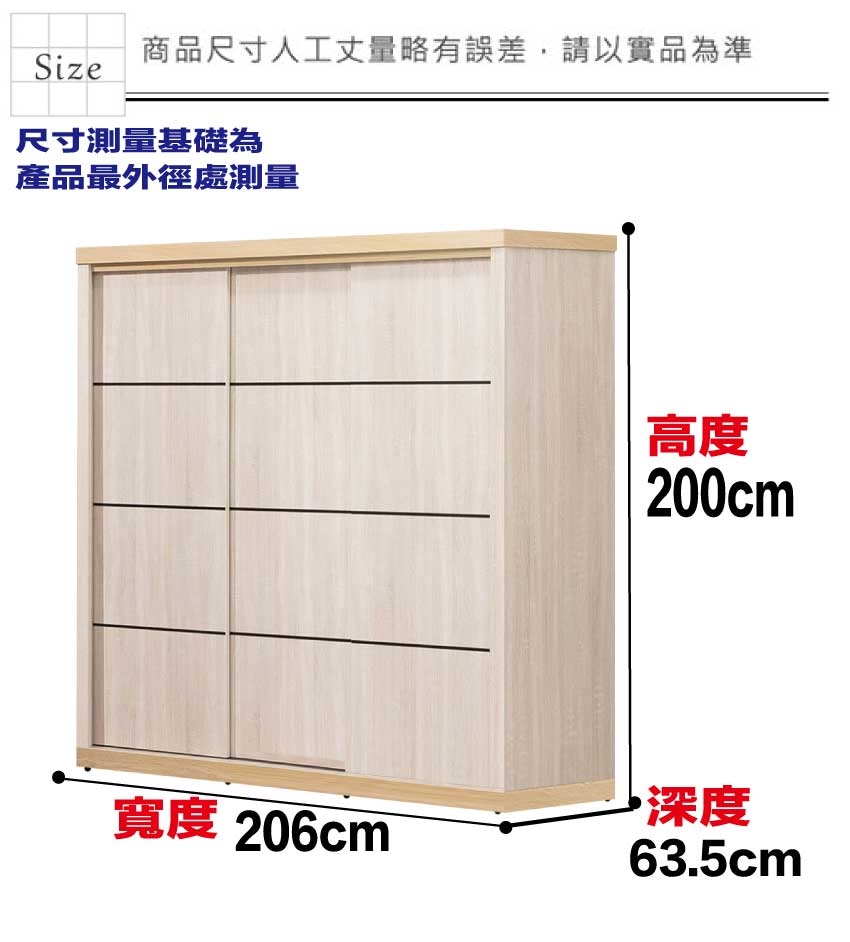 - 尺寸:(寬)206x(深)63.5x(高)200/公分
